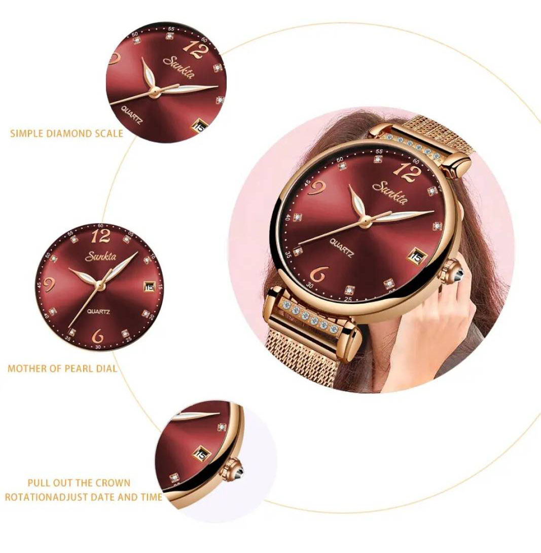 Fruit d'une conception raffinée, la Montre SUNKTA Lyria a spécialement été imaginée pour apporter une pointe de luxe et raffinement à votre quotidien. Pensée pour les femmes audacieuses et élégantes, accrocs d'accessoires bien choisis, cette montre de luxe femme pas cher est une authentique expression de style et de charme féminin.
