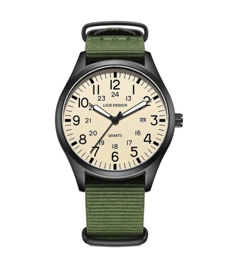 The hands and hour markers are coated with a luminous finish, ensuring a clear reading of the time even in the dark. This feature is ideal for low-light environments or during nighttime activities.