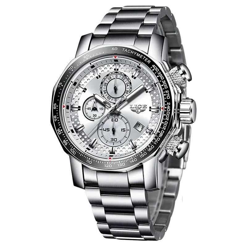 This men's watch stands out with its large dial and sporty-chic style, ideal for any occasion. Its modern look suits both casual wear and a suit, adding a touch of refinement to your wrist.