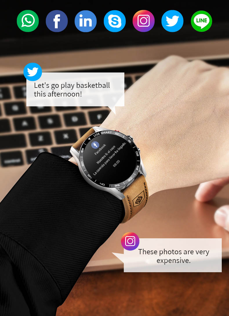 Receive all your SMS, Twitter, Facebook, and other app notifications directly on your wrist in real time. Never miss any important information again thanks to instant message synchronization.