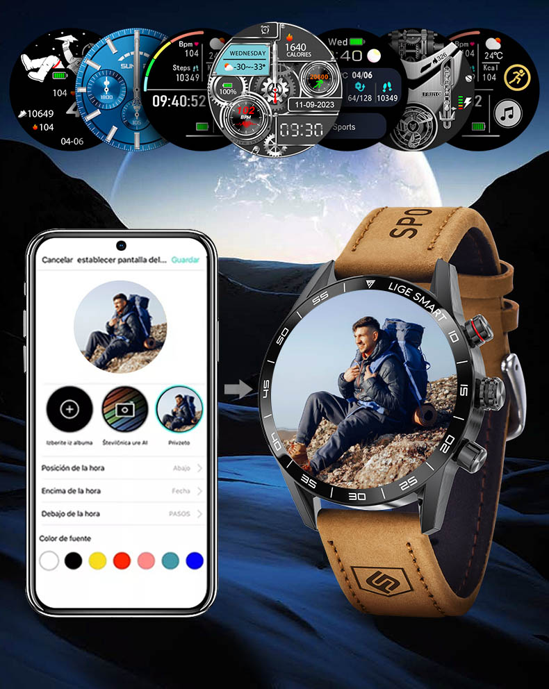 Customize the watch face with your favorite photos for a unique display. Track your steps, calories burned, and other essential data throughout the day to stay in control of your well-being.