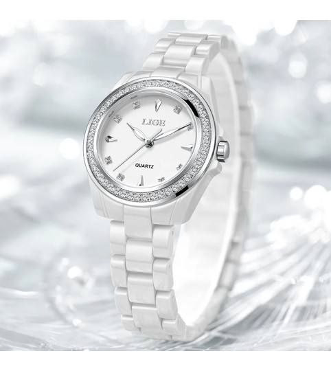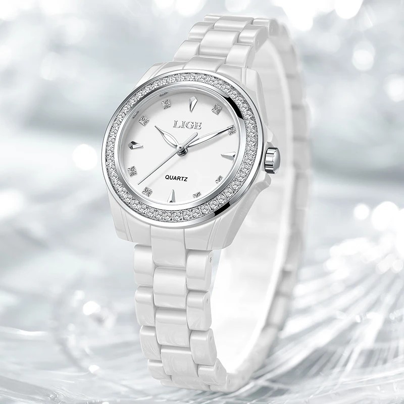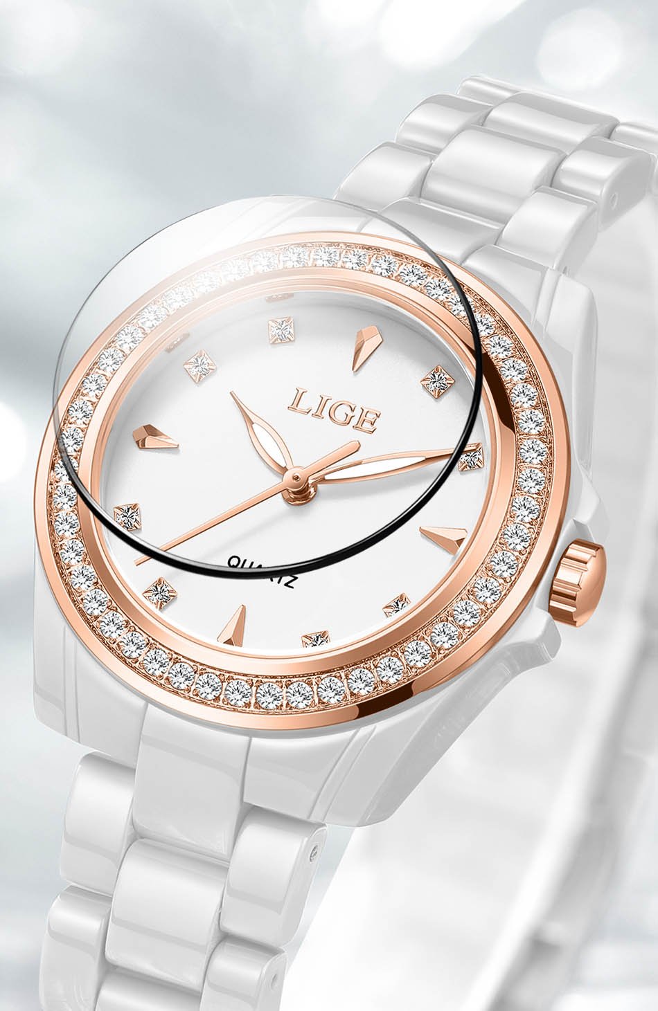 This women's watch combines a trendy ceramic case with an aesthetic that is both elegant and timeless. Its meticulous finishes and minimalist round design subtly highlight the wrist while adding a touch of discreet sophistication. Designed for daily use, it combines chic allure, quality craftsmanship, and durability, naturally fitting into all wardrobes. Its style transcends trends and adapts as well to everyday outfits as to more dressed-up occasions, offering a refined accessory that highlights the personality of the wearer.