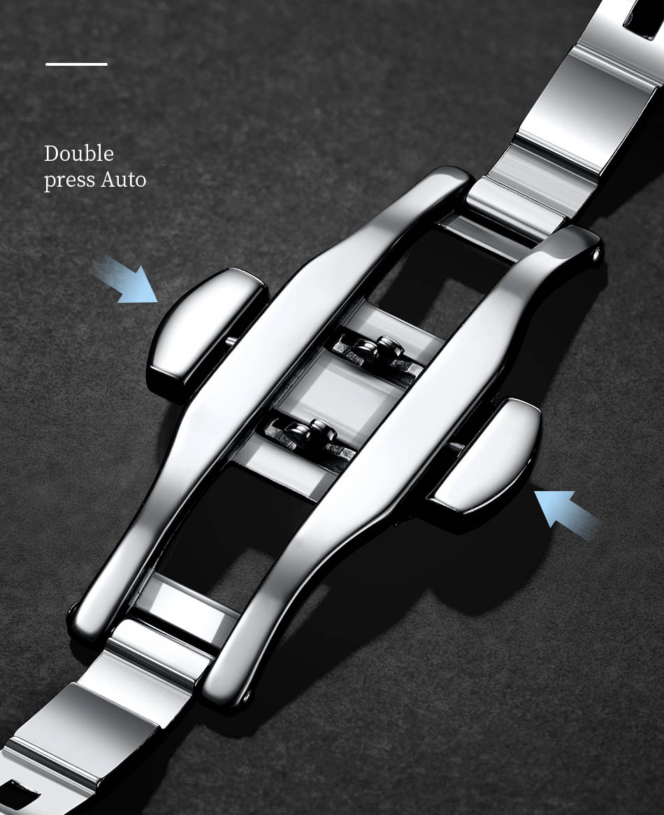 The double push-button butterfly clasp ensures a secure and durable closure. This practical system makes it easy to put on the watch while ensuring an excellent fit on the wrist.