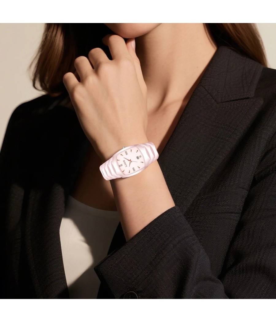 Este reloj para mujer seduce por su caja de cerámica fina, agradable al tacto y elegante en la muñeca. Su estilo atemporal resalta la feminidad al tiempo que ofrece una excelente resistencia a los arañazos. El aspecto luminoso de la esfera refleja la luz y realza cada movimiento de la muñeca, aportando un toque de refinamiento y distinción adecuado para todas las ocasiones.