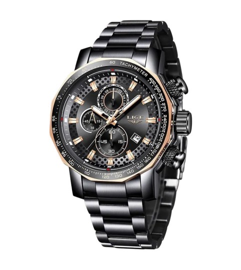 Cette montre intègre un chronographe précis et un affichage de la date, parfaits pour un usage quotidien ou sportif. Les boutons latéraux permettent un réglage simple et rapide des différentes fonctions, assurant une expérience utilisateur optimale.